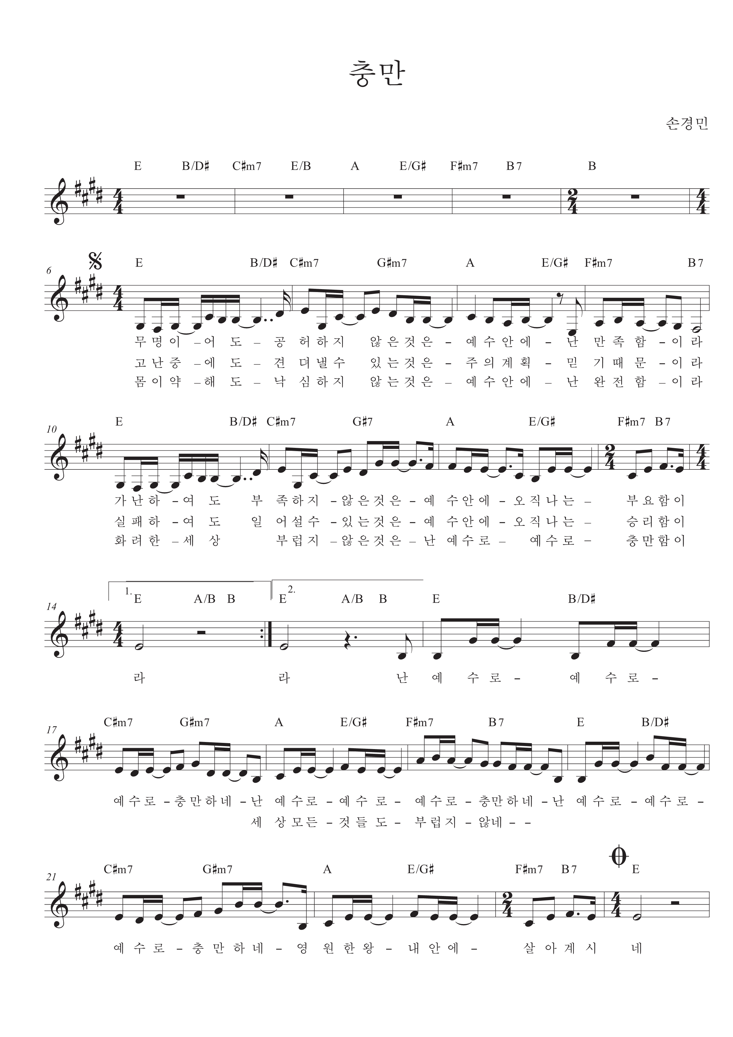 [찬양 악보] 충만 - 지선, 손경민 작사/작곡 G코드 리드시트
